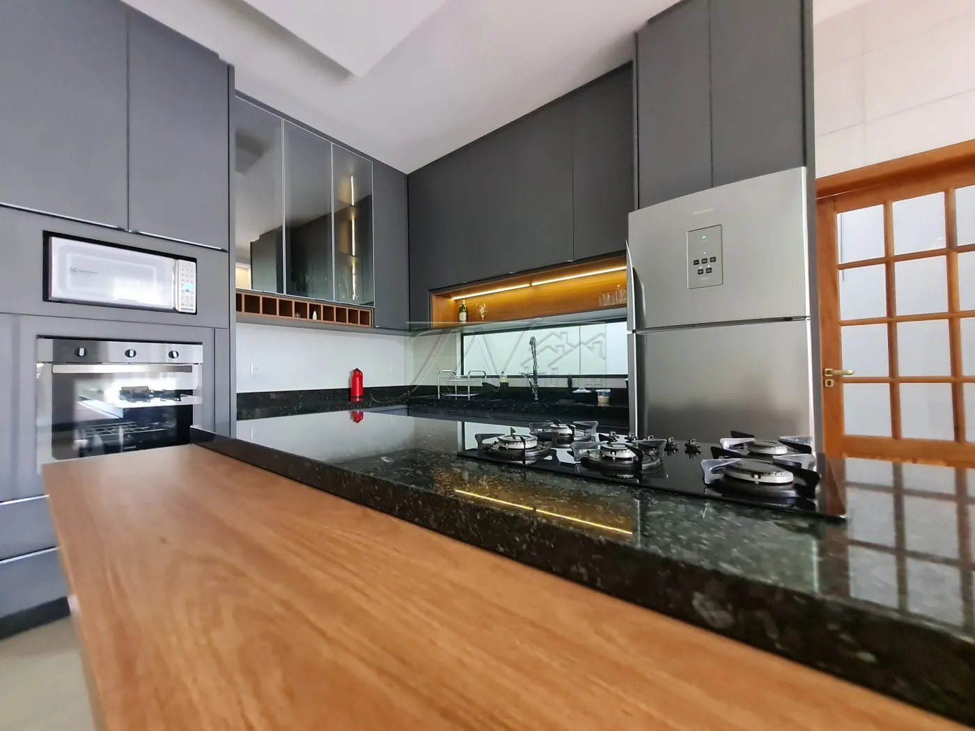 Sala ampla 4 metros de altura, ambiente integrado com copa e cozinha;