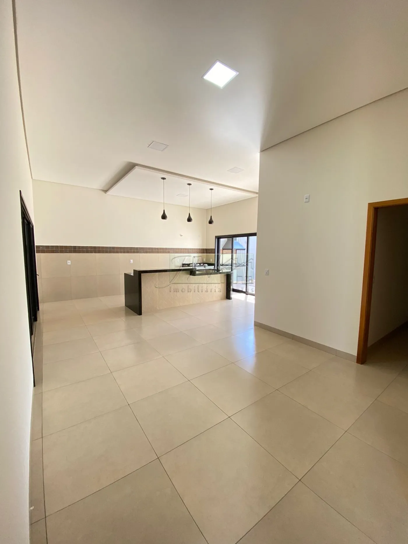 Sala ampla com pé direito elevado;
