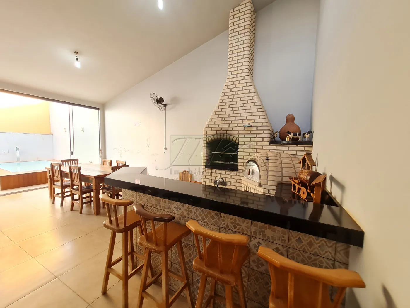 Churrasqueira e piscina nos fundos;