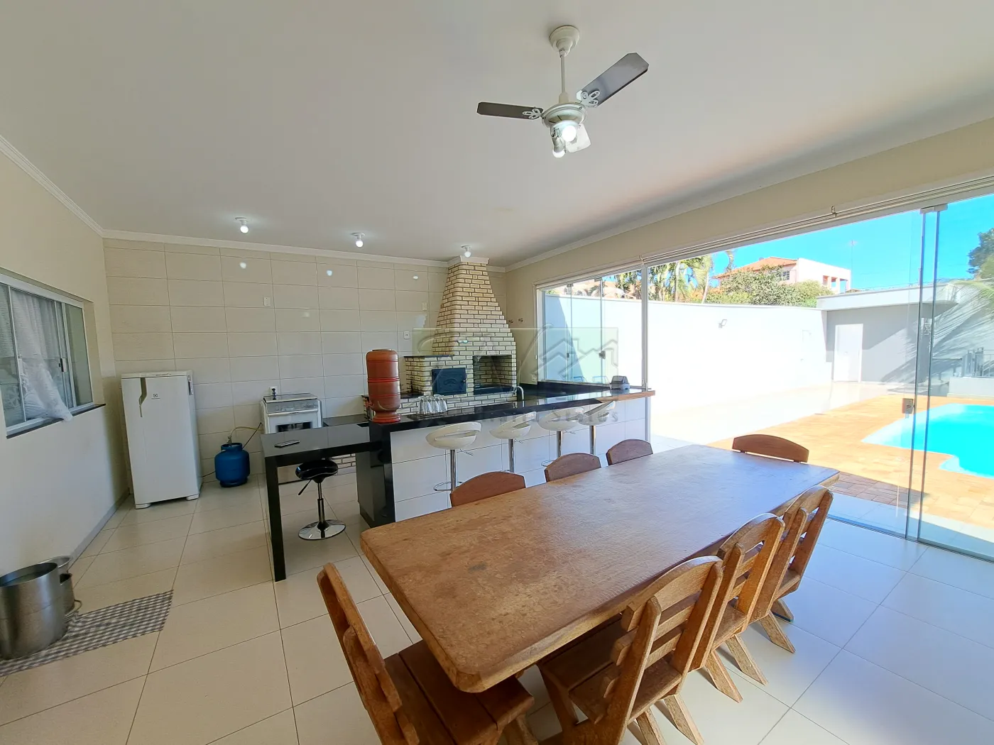 Área Gourmet com Churrasqueira cozinha externa e piscina;